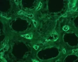 C4d is the degradation product of the activated complement factor C4, a component of the classical complement cascade, which is typically initiated by binding of antibodies to specific target molecules. Detection of C4d is regarded as an indirect sign, a “footprint” of an antibody response against the allograft. The majority of publications describe C4d as an important biomarker in kidney transplantation but also in heart, liver, and other transplants.